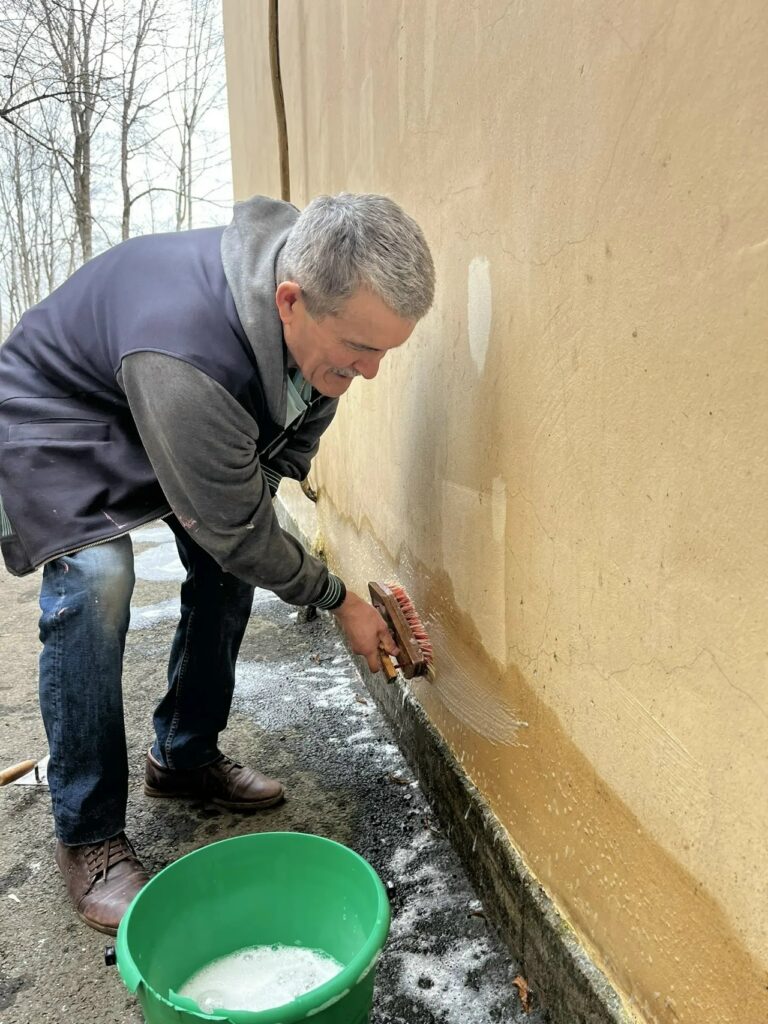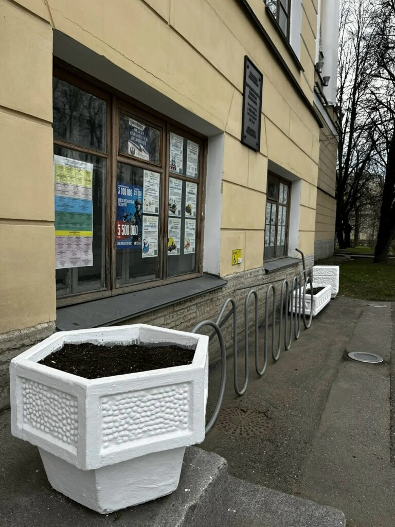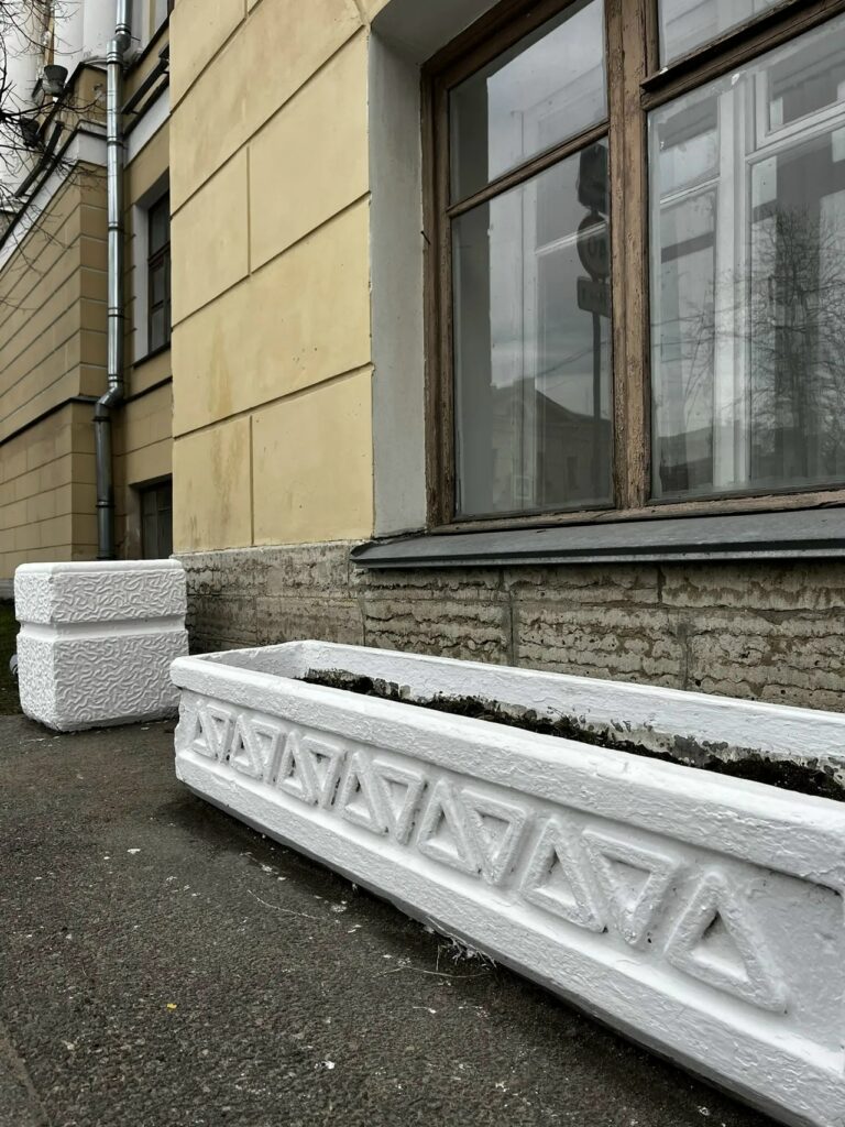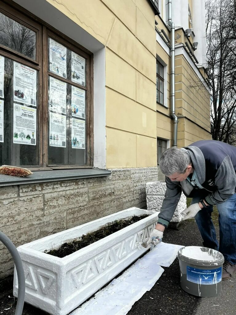 - покрашены вазоны у здания;