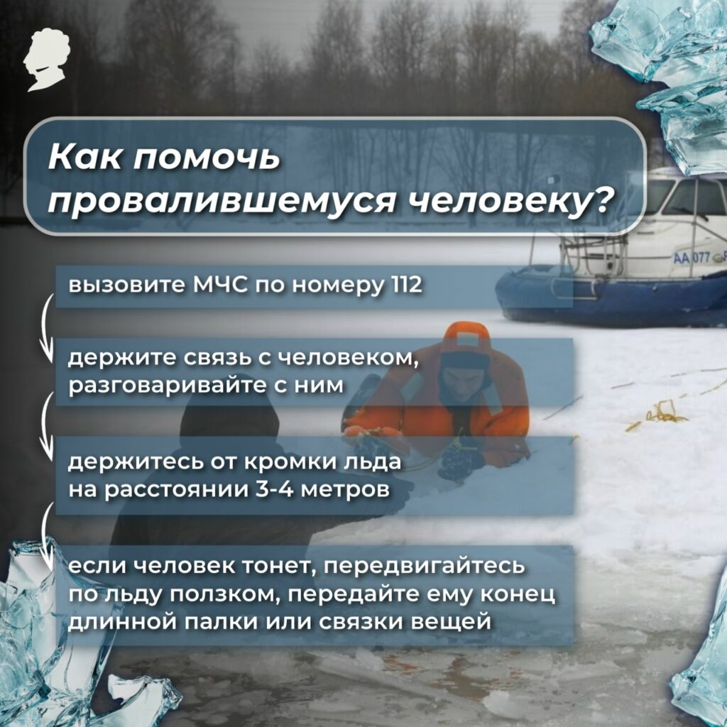 - не лезть в воду к пострадавшему, если человек провалился под лед, а звать на помощь взрослых.