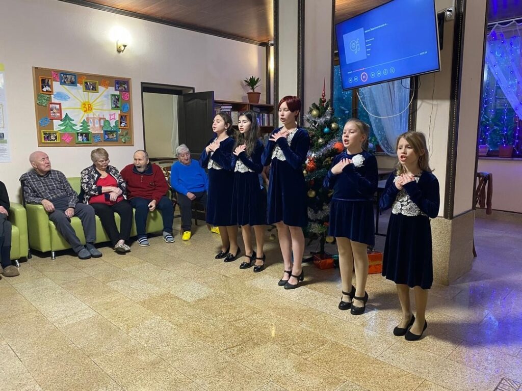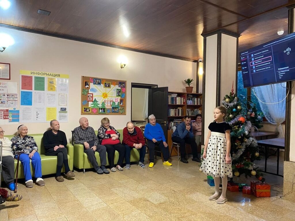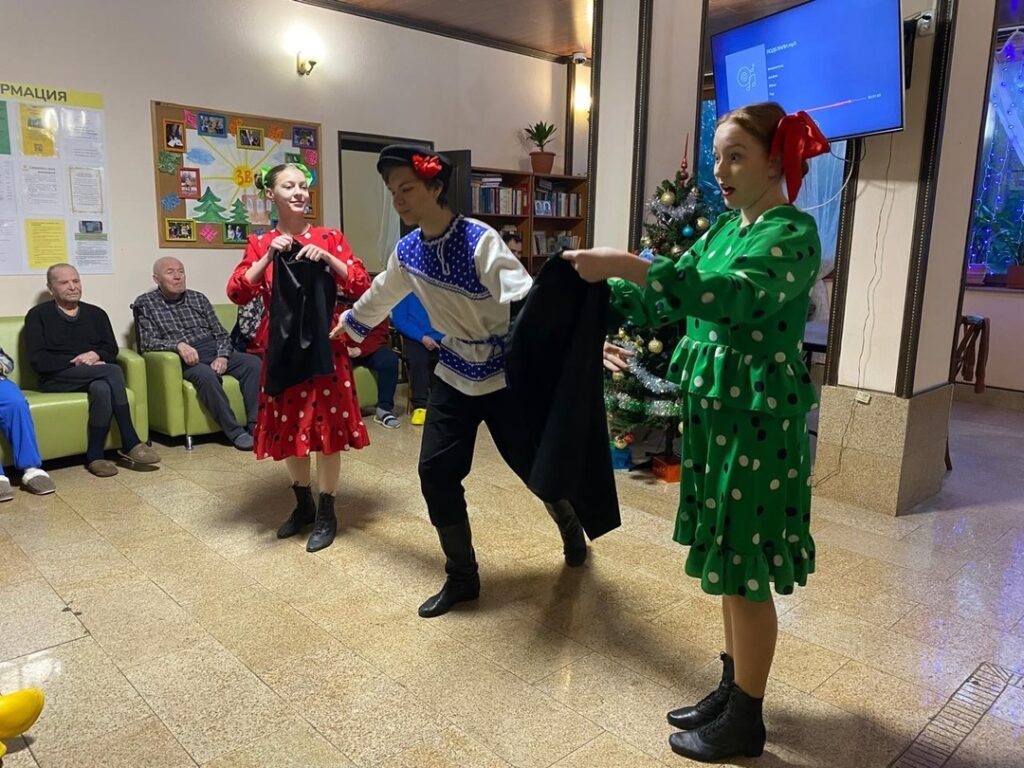Воспитанники Дворца Творчества Пушкинского района и районные активисты провели добровольческую новогоднюю акцию в пансионате «Золотое время».