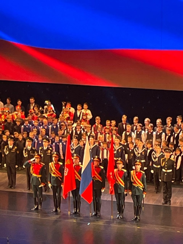 В праздничном концерте приняли участие детские коллективы учреждений дополнительного образования и воспитанники военно-патриотических объединений, творческие группы кадетских классов петербургских школ. В концерте, в составе сводного хора выступали лучшие хоры мальчиков Санкт-Петербурга, среди которых был Образцовый «Хор мальчиков «Царскосельский» Дворца Творчества Пушкинского района Санкт-Петербурга.