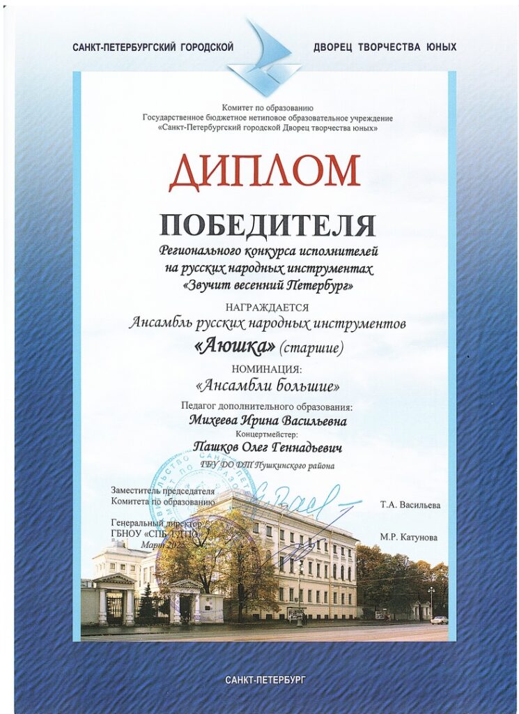 23 апреля состоялось награждение Победителей и Лауреатов Регионального конкурса исполнителей на русских народных инструментах «Звучит весенний Петербург».