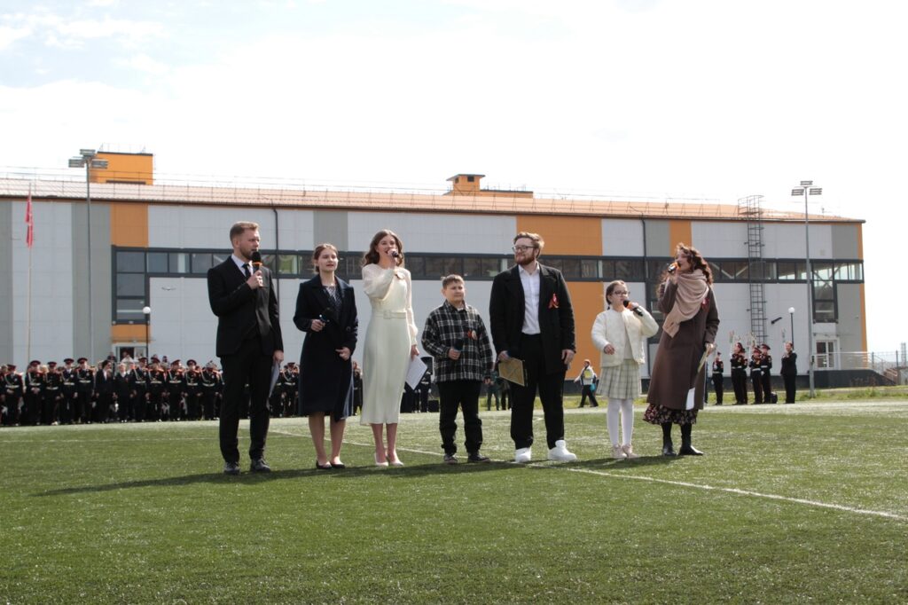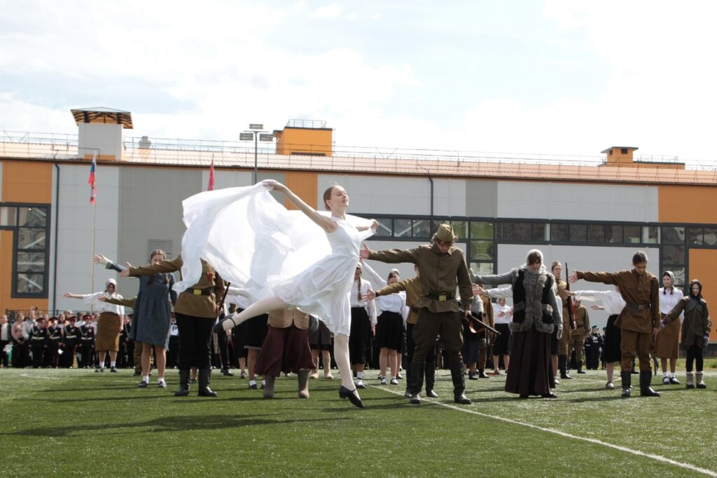 Ребята перенесли нас на поле боя к раненому бойцу, показали, как боролись за жизнь в осажденном Ленинграде, дали всем нам возможность почувствовать всю тяжесть многочасового трудового дня. Под знаменитую музыку «Журавли» участники мероприятия с портретами героев войны организовали «Бессмертный полк», была объявлена минута молчания. Завершал историческую зарисовку проход парадных расчетов отрядов «Зарницы», Юнармии и кадетских классов.