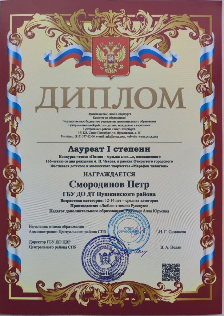 В средней возрастной группе, в разных номинациях , Лауреатами I степени стали Константин Попов и Петр Смородинов.
