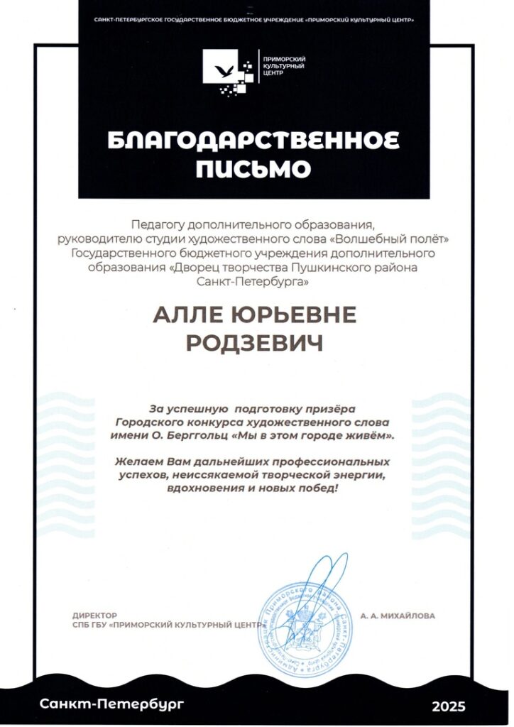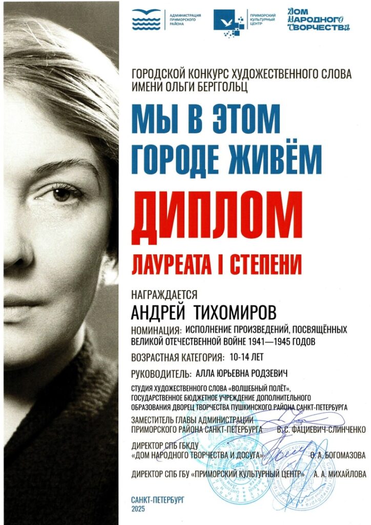 Поздравляем обучающихся студии художественного слова «Волшебный полет»(педагог Родзевич А.Ю.):