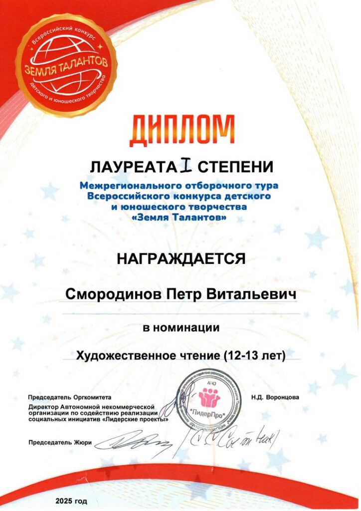 7 июня 2025 года в Санкт-Петербурге состоялся Межрегиональный отборочный тур Всероссийского фестиваля детского и юношеского творчества «Земля талантов».