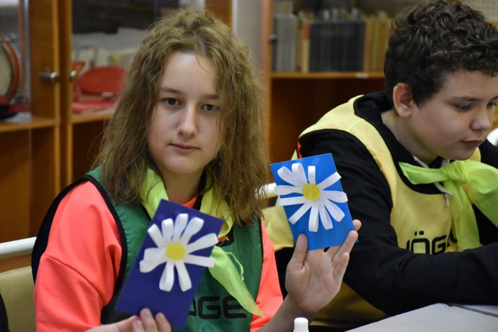 После азартной игры ребят ждал творческий мастер-класс «Семейная ромашка». Мастер-класс по изготовлению открыток стал настоящим праздником для фантазии. Белая бумага, цветной картон, ножницы, клей и, конечно же, главный символ Дня семьи – ромашка, ждали своих умелых создателей. Закончив свои шедевры, ребята с гордостью демонстрировали их друг другу. Каждая открытка неповторимы и отражает индивидуальность своего автора.
