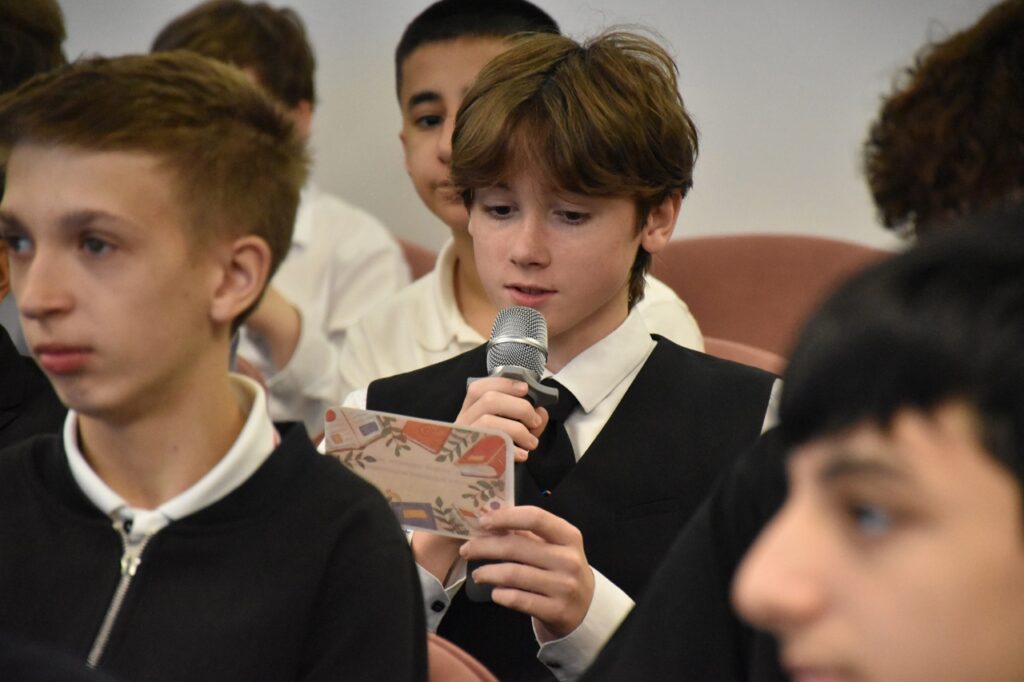 Ребята смогли задать гостю самые разные вопросы — о любимых книгах и жанрах, профессиональном пути и взгляде на «вечность» печатных изданий. Самые активные и любопытные по традиции получили в подарок памятные блокноты.
