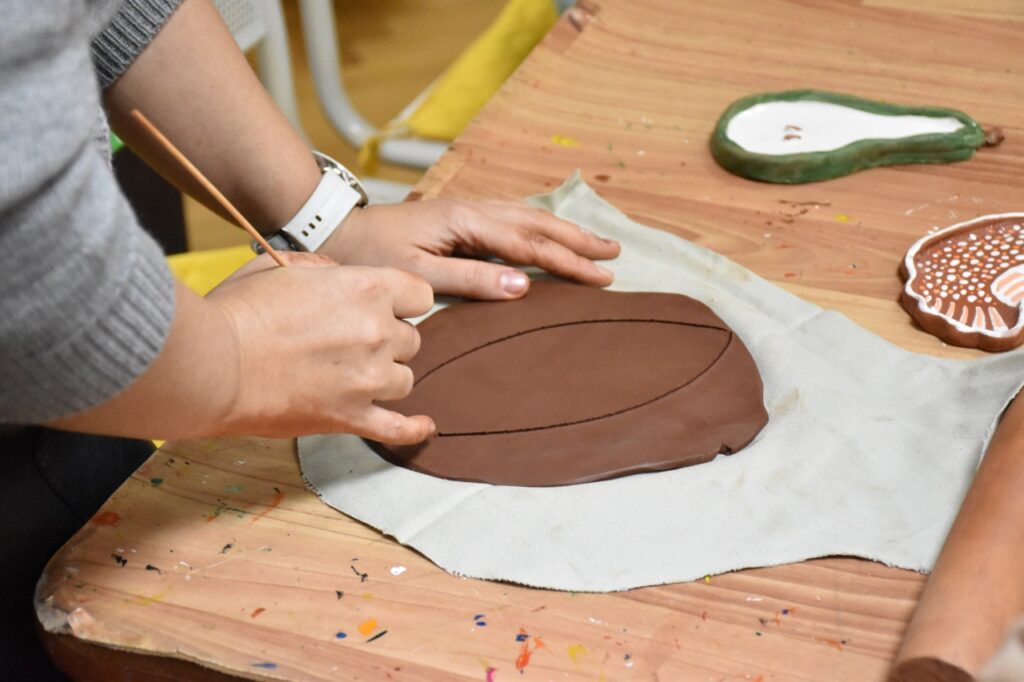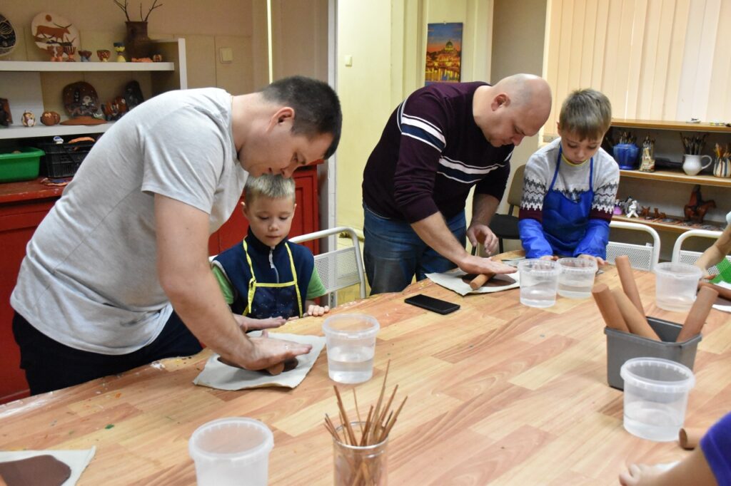 Педагог Степанова Ольга Леонидовна поделилась секретами создания из глины менажниц и тарелок с папами и своими обучающимися из объединений занимающихся по программам, связанным с керамикой.