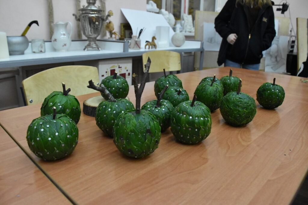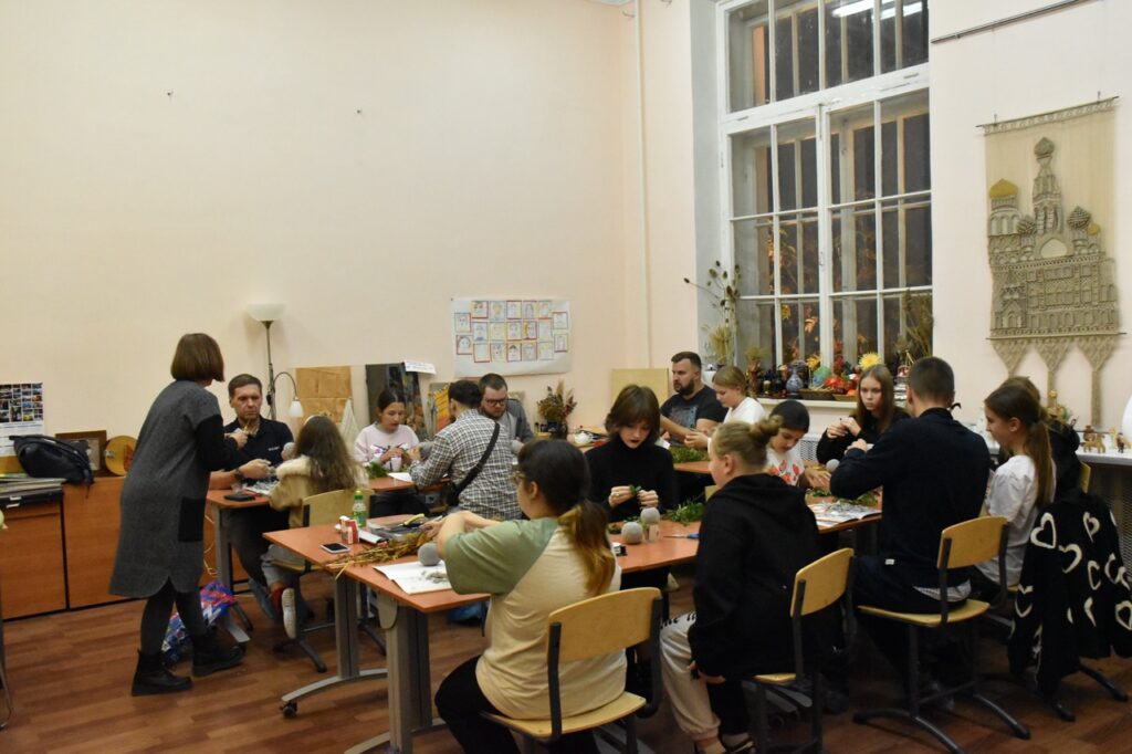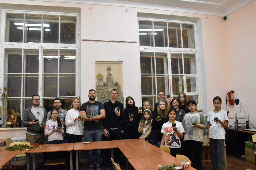 На занятии объединения «Флористика и декор» творческие семьи создали декоративное яблоко из листьев брусники под руководством педагога Коротаевой Юлии Сергеевны.