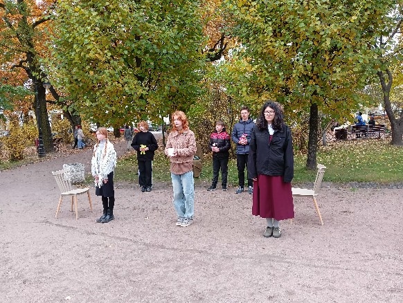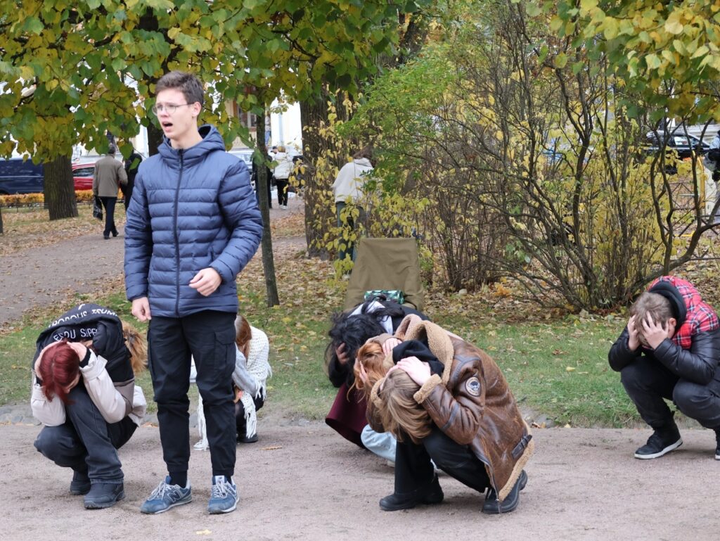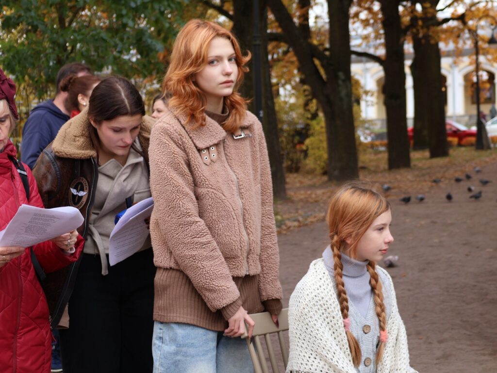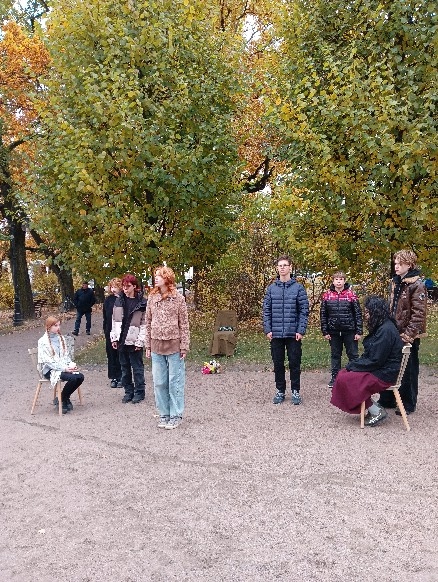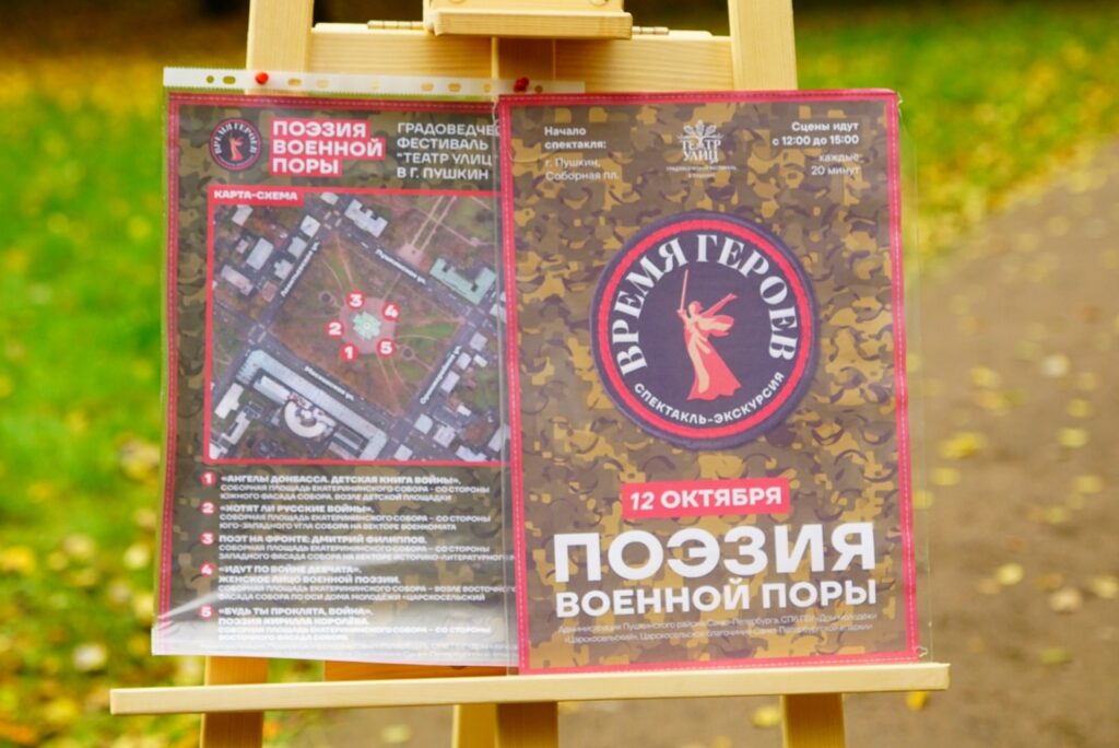 12 октября обучающиеся театральной студия «Маска» ( педагог дополнительного образования Агафонова В.И.) традиционно провели на улице города Пушкина. 3 часа длился ежегодный градоведческий фестиваль «Театр Улиц» , организованный Дом молодёжи «Царскосельский» . Тема фестиваля этого года — «Время героев. Поэзия военной поры», фестиваль посвящен Году защитника Отечества.